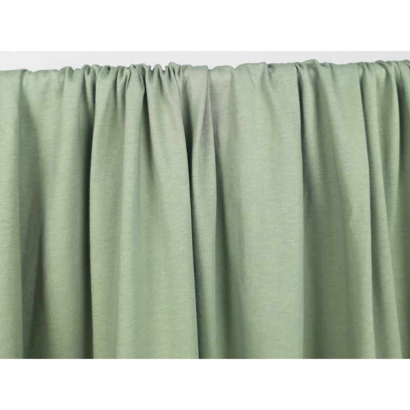 L'Avis d'YvonneSuperbe Jersey en mélange Coton et Bambou Kaki clair, de très belle qualité, léger, souple et agréable au toucher, il sera parfait pour coudre tout type de Hauts, Tee-Shirt, manches courtes ou longues, Top, Cache-Coeur etc ..