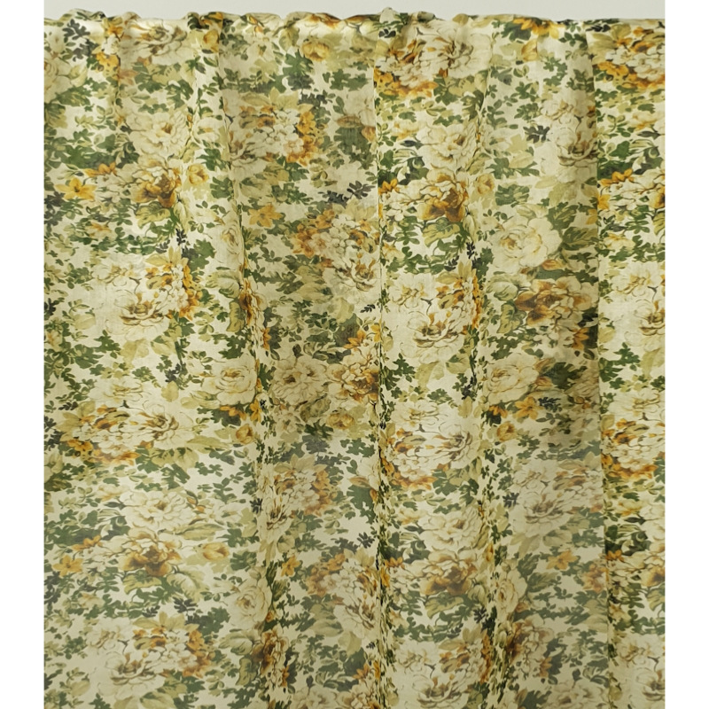 Tissu Voile Coton / Soie Fleurs Romantiques Vert